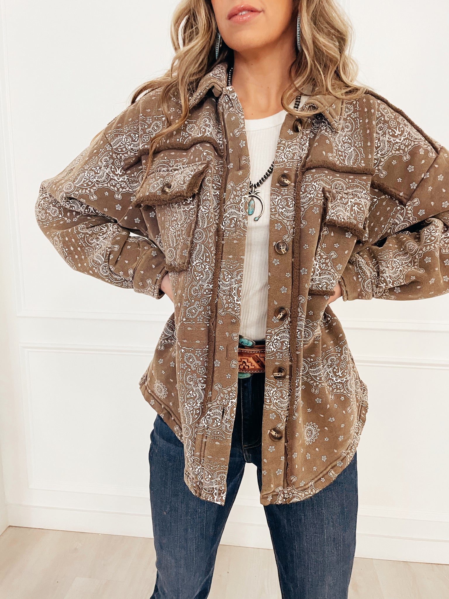 Brown oversized jacket, sherpa material on inside